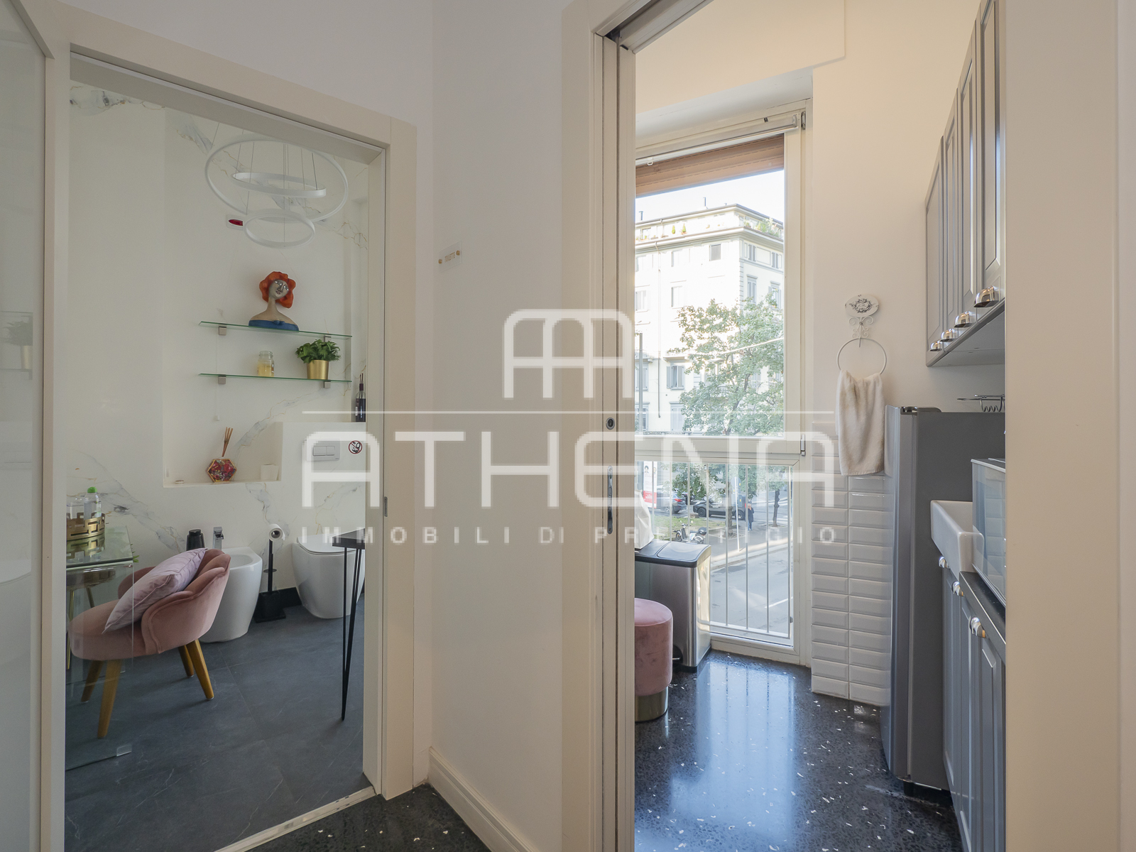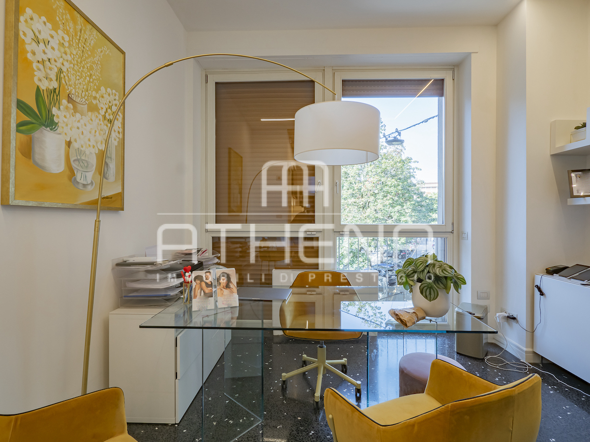 Via Moscova angolo Largo la Foppa- Ottima posizione in una delle zone più vivaci di Milano, nel cuore di Brera a pochi passi da piazza Gae Aulenti, Corso Como e Parco Sempione. L'immobile si trova nelle immediate vicinanze della metro di Moscova, la zona è caratterizzata dalla presenza di numerose attività commerciali e di servizio. Lo stabile è stato recentemente ristrutturato in tutte le parti comuni, l'immobile presenta ambienti eleganti grazie alle finiture di altissimo pregio e la pavimentazione in seminato veneziano. Dotato di sistema domotico. Il palazzo ha una lussuosa lobby con servizio di portineria attivo tutto il giorno e all'interno si trova un grazioso giardino comune. Ampio e luminoso, l'immobile è composto da un'ampia reception dalla quale si aprono a ventaglio otto stanze, due bagni, un ripostiglio, balcone e terrazzo. Attualmente l'immobile è adibito a studio professionale ma è facilmente trasformabile in elegante abitazione Possibilità box all'interno del condominio € 100.000